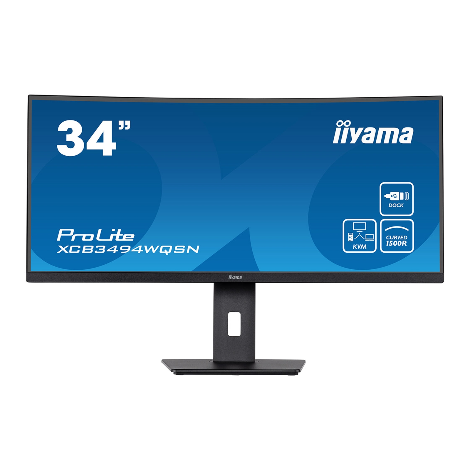 34 Inch UWQHD curved with USB-C dock, KVM switch and 150mm height adjustable stand